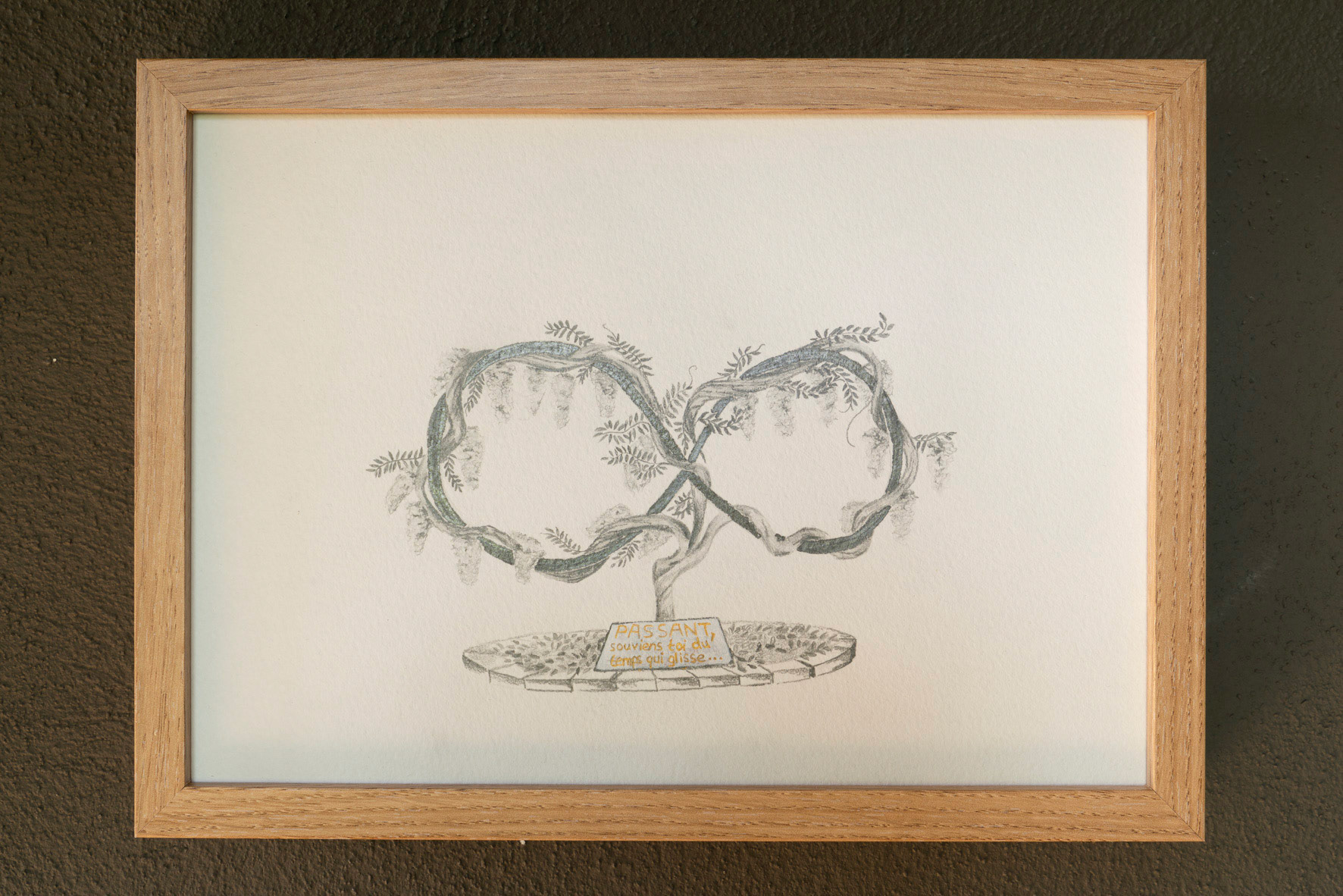 Dans sa série de dessins Monuments imaginaires, Sybille du Haÿs imagine des lieux de mémoire adaptés aux besoins contemporains de mémoire collective. Chaque dessin interprète les formes classiques de la commémoration (stèles, statues, croix) en intégrant des éléments plus abstraits. Avec ces monuments, elle interroge l’impact de l’absence, de contre-monument où le vide et l’invisibilité deviennent aussi des supports de mémoire. Elle nous pousse alors à envisager la mémoire comme un processus vivant, capable d’évoluer. Elle questionne la rigidité des dispositifs actuels en proposant des structures qui évoluent et se transforment, intégrant des matériaux organiques. Loin de figer la mémoire dans un cadre imposé, ces monuments deviennent supports à réappropriation personnelle du souvenir, un moyen de dépasser le passé pour inventer un futur commun où chacun·e est gardien·ne de la mémoire.
